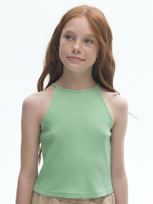 Укороченный топ-халтер из модной ткани в рубчик для девочки. В составе преобладают хлопок и вискоза – модель мягкая, приятная на ощупь и комфортная для кожи ребёнка. Эластан помогает изделию не терять форму. По горловине завязка, с её помощью можно регулировать высоту горловины и посадку топа. Топ-халтер - мастхэв этого лета. Модель подчёркивают красоту открытых плеч, рук и спины. Вырез под горло даёт дополнительный акцент на плечи и удлиняет шею. Для самых модных девочек. Сочетается с любыми объемными низами.