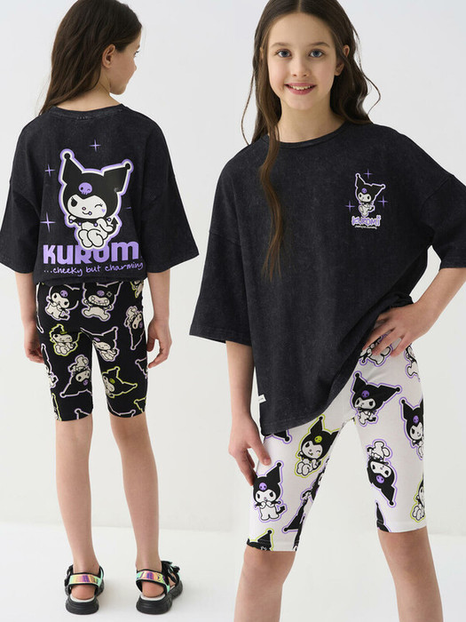 Набор легинсов для девочки подростка. Комплект состоит из двух пар укороченных легинсов. Принт с любимым мультяшным героем Куроми. Обе модели имеют высокую посадку и эластичный пояс, который хорошо фиксирует изделие на талии. Материал - мягкий, хлопковый трикотаж.