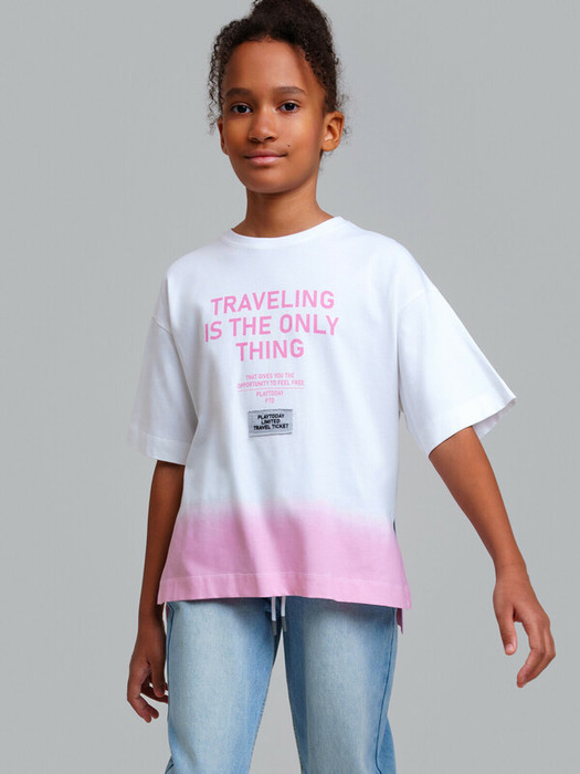 Футболка оверсайз для девочки подростка. Высокое содержание хлопка. Благодаря наличию эластана в составе ткани изделие держит форму и меньше мнется.  Модель выполнена из качественного и приятного на ощупь трикотажа.