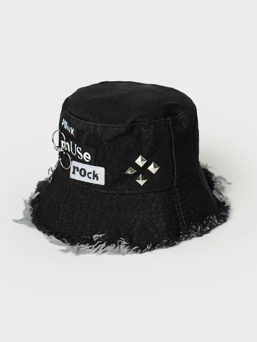 Панама из плотного хлопкового денима для девочки подростка. Модель украшена множественными декоративными элементами: металлическими кольцами, заклёпками и текстовыми принтами в стиле панк. Широкие поля с необработанным краем создают неформальный стиль. В конструкции предусмотрены вентиляционные отверстия и внутренний регулирующий шнур для фиксации.