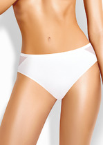 Трусы бикини женские из эластичного хлопкового полотна. Обработка краев по талии ажурная резинка, по ноге- полуокантовка. По переду узкое кружево, атласный бант.