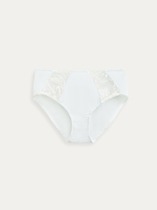 Бразилиано из кружева. По талии расположена резинка с фестоном. По переду в центре - небольшой атласный бант.
