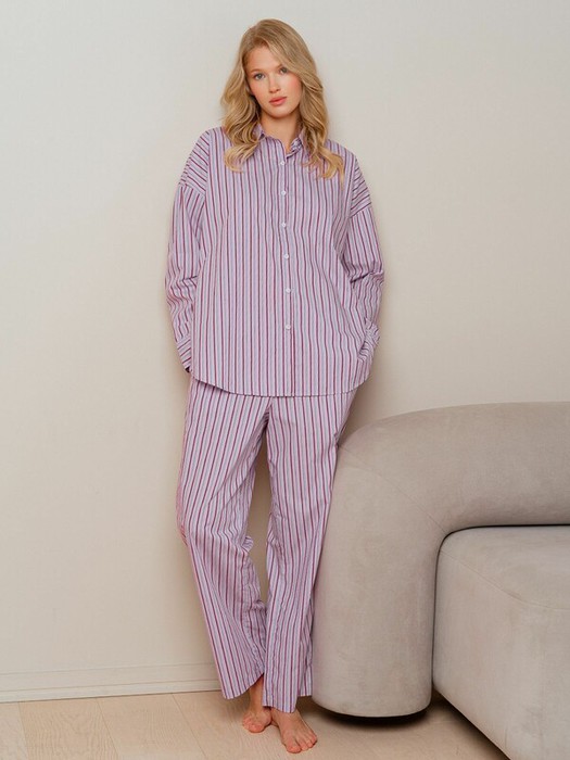 Пижама украшена принтом в полоску.