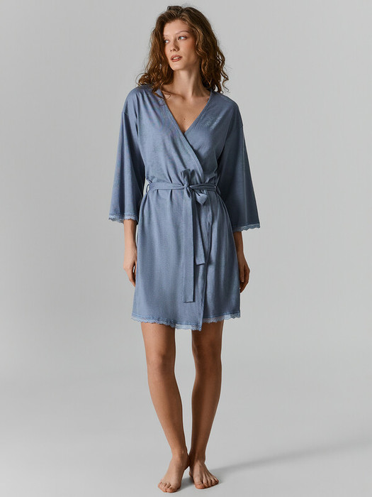 Женский халат прямого силуэта — это элегантная и удобная модель, созданная для домашнего уюта и расслабленного отдыха. Длина до колен делает его практичным и универсальным, подходящим как для утренних ритуалов, так и для вечернего расслабления. Халат выполнен с запахом, что позволяет регулировать посадку по фигуре, а съёмный пояс, продетый в шлевки по бокам, обеспечивает надежную фиксацию и подчеркивает талию. Дополнительные завязки на уровне талии помогают зафиксировать халат изнутри, делая посадку более стабильной и комфортной. Концы пояса свободно завязываются, позволяя регулировать степень прилегания. Длинные рукава создают ощущение уюта и тепла, особенно в прохладное время. Изделие выполнено из мягкого, приятного к телу материала — смеси модала и хлопка, которая отличается высокой воздухопроницаемостью, нежностью и устойчивостью к износу. Такой халат станет любимым элементом домашнего гардероба, сочетая в себе комфорт, функциональность и женственность.