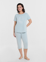Хлопковый домашний комплект для женщин. Состоит из расслабленного лонгслива и брюк свободного силуэта. Лонгслив с круглым вырезом, длинными рукавами. Брюки прямые, с эластичной тесьмой в поясе. Рекомендуем для крепких снов и домашних дел!
