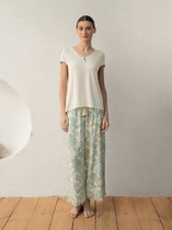 Комплект женский состоит из джемпера и шорт. Джемпер прямой, свободный. Горловина круглая обработана обтачкой из основного полотна. Рукава втачные, короткие. Нижние срезы джемпера и рукавов обработаны швом вподгибку. Шорты короткие, свободные. Посадка высокая. Пояс цельнокроеный с эластичной тесьмой внутри (внутренняя 30мм 30RV). Нижние срезы шорт обработаны швом вподгибку.