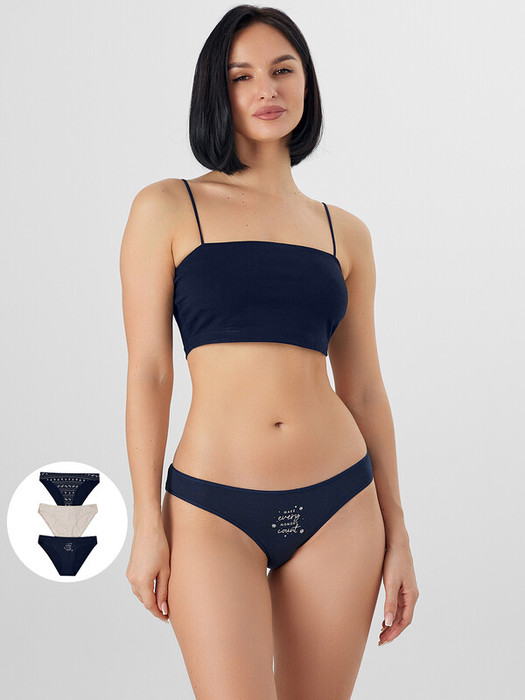 Набор (мультипак) из трех пар женских трусов разного цвета. Трусы женские слипы хлопковые или, как их еще называют, слип-бикини — популярная модель женского белья. Невероятно удобные, благодаря своей заниженной посадке, они пользуются заслуженной любовью покупательниц. Трусы изготовлены из высококачественного натурального хлопка, дышащего, мягкого, гипоаллергенного. Продуманная анатомическая конструкция, плоские швы и деликатные резиночки делают эту модель подходящей для занятий спортом. Пригодятся трусики будущим мамам: низкая талия трусиков удобно помещается под растущим животиком и абсолютно не давит. Рекомендуем!