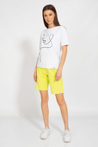 Джемпер из поливискозного трикотажного полотна джерси. Округлая горловина с обтачкой, короткий втачной рукав. По низу кулиса. По переду принт.