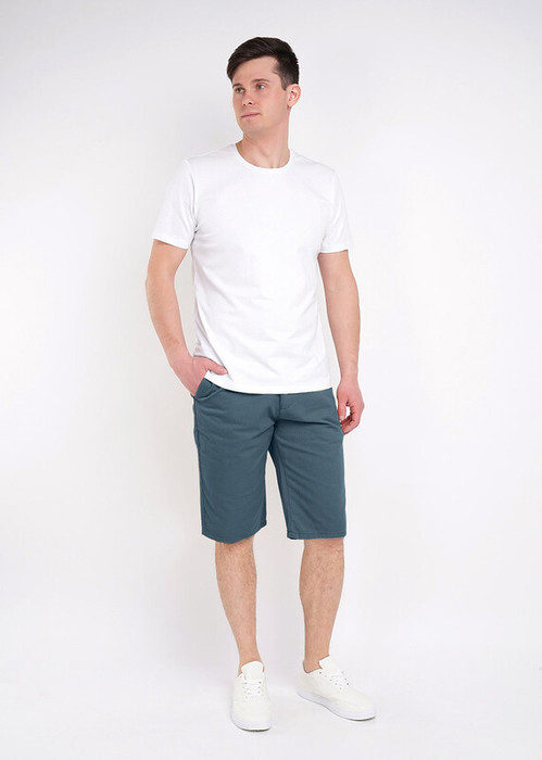 Прямые мужские хлопковые шорты средней посадки длиной выше колена. Удобство обеспечивается за счет карманов: задних прорезных и боковых. Универсальный крой данной модели подойдет под любой повседневный образ и с футболкой и пиджаком.