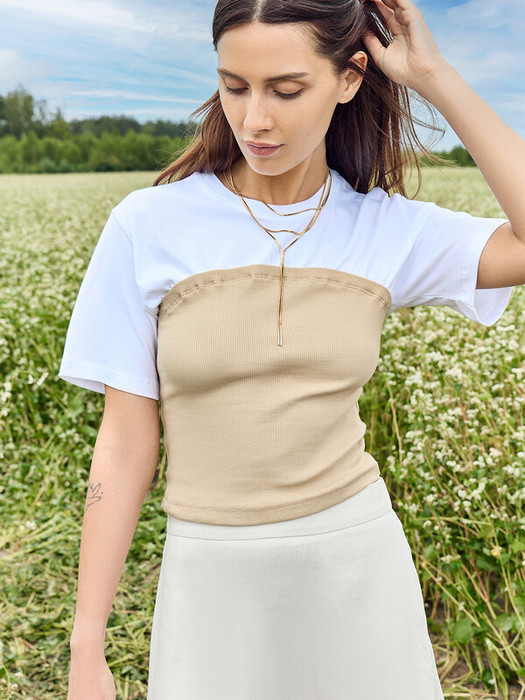 Джемпер с отрезной деталью «под корсет» из рибаны. Деталь из рибаны прилегающего силуэта.