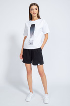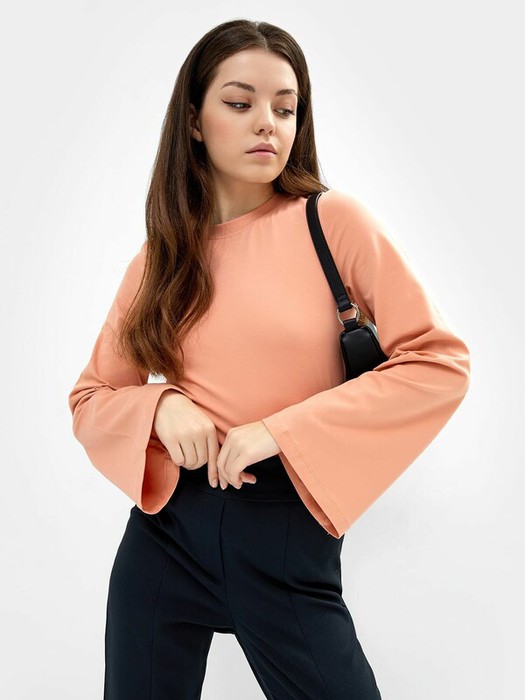 Джемпер женский из кулирного полотно с эластаном. Перед и спинка цельнокроенные, с облеганием в плечевом поясе и по груди, и с расклешением к низу изделия.