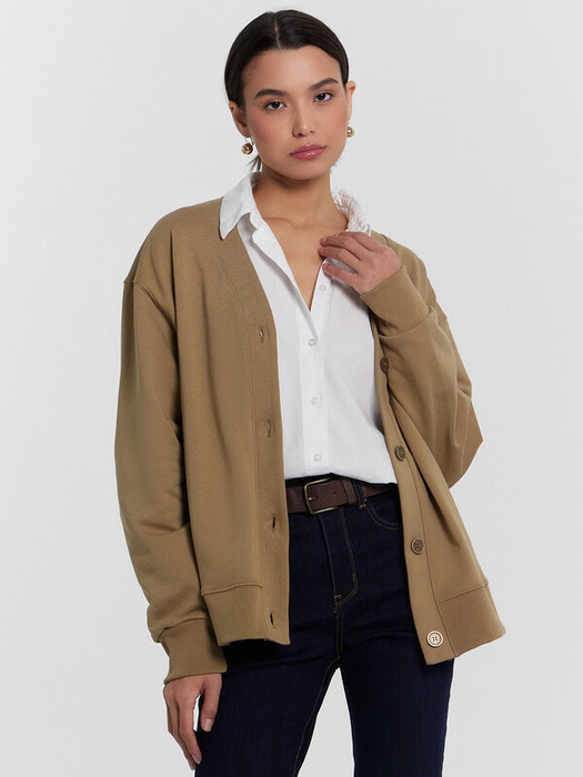 Женский кардиган на пуговицах, который станет прекрасным дополнением вашего гардероба. Модель свободного кроя с V-образной горловиной и длинными рукавами, спущенное плечо придает образу непринужденность и стиль. Застежка на петли и пуговицы позволяет легко регулировать посадку, а боковые карманы добавляют функциональности. Изделие выполнено из трикотажного футера - материала, который отличается мягкостью, дышащими свойствами и теплотой. Футер обеспечивает комфорт и уют даже в прохладные дни, делая этот кардиган идеальным выбором для повседневного ношения.