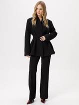 Брюки с посадкой на талии, прямого силуэта. Пояс цельнокроеный с резиной внутри. Низ брюк обработан швом в подгибку.