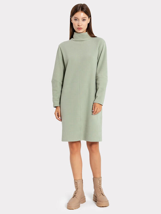 Однотонное женское платье прямого силуэта из селаника – невероятно нежного и приятного к телу трикотажного полотна. Вырез круглой формы, с воротником-стойкой. На спинке застегивается на потайную молнию. Спереди проходит интересный центральный шов. Рукава платья длинные и объемные, с горизонтальным швом примерно по центру. Длина модели – по колено. Рекомендуем для стильных образов на каждый день!
