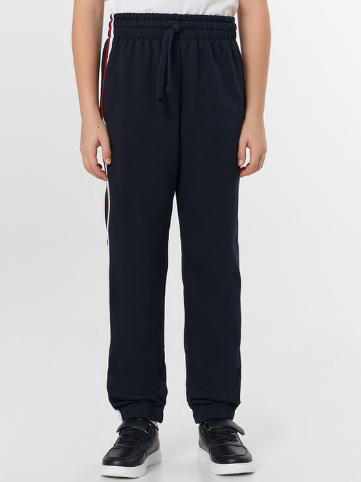 Нижние срезы обработаны в подгибку с эластичной тесьмой внутри 30RV. По бокам настрочены лампасы.