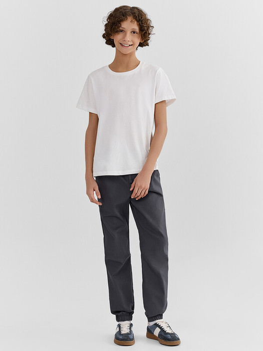 Спортивные брюки для мальчиков. В составе текстильного полотна преобладает хлопок, полиэстер и эластан добавлены для прочности. Брюки длиной выше косточки, с классической линией талии. Силуэт прямой, слегка заужен к низу. Пояс с регулировочным шнурком. Есть карманы-хулиганы. Спереди – имитация гульфика. Штанины завершаются эластичной тесьмой. Стильные брючки!