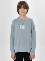 Джемпер для мальчиков свободного силуэта. Рукава втачные. Низ рукавов обработан швом вподгибку. Горловина круглой формы, обтачка из рибаны. По боковым швам разрезы, спинка длинее переда. Низ джемпера обработан швом вподгибку.