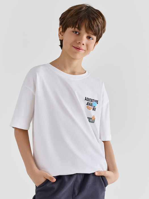 Футболка для мальчиков свободного силуэта, выполненная из хлопковой трикотажной кулирки. Натуральный материал отличается мягкостью и дышащими свойствами, что обеспечивает максимальный комфорт на протяжении всего дня. Модель имеет короткие рукава и круглую горловину, а спущенная линия плеча добавляет особого комфорта и свободу движений. Эта модель идеально подходит для активного отдыха и повседневного ношения, сочетая в себе стиль и удобство.