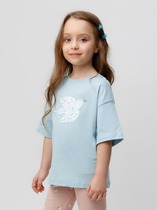 Футболка свободного силуэта из хлопковой трикотажной кулирки. Длина до середины бедер. Рукава короткие. Горловина круглой формы, с  обтачкой из рибаны. Спущенная линия плеча дарит особый комфорт. Стильно и удобно!