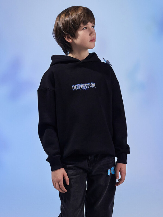 Анорак изготовлен из трикотажного полотна футер. Анорак свободного силуэта (оверсайз), с капюшоном. Горловина округлой формы. Капюшон со средним швом, на подкладке из осн. полотна. Плечо спущено, рукав втачной длинный. По низу рукава отрезная манжета из рибаны.