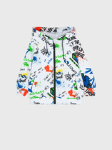 Худи для мальчиков, свободного силуэта (оверсайз), с капюшоном. Горловина округлой формы. Капюшон со средним швом, на подкладке из основного полотна. Шов втачивания капюшона закрыт хб тесьмой. Плечо спущено, рукав втачной длинный. По низу рукава отрезная манжета из рибаны. Пояс отрезной из рибаны, отстрочен. По переду карман кенгуру.