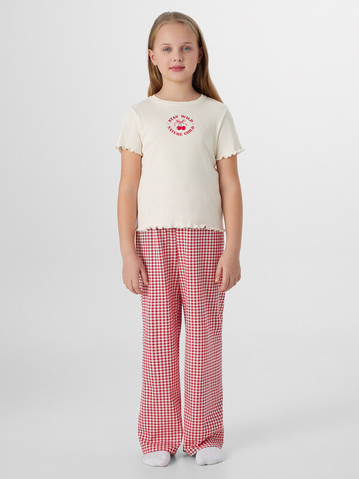 Комплект для девочек состоит из джемпера и брюк.