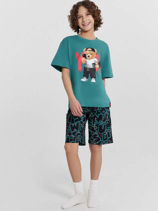Шорты ниже колена, свободного силуэта с высокой посадкой на талии. Спереди карманы с отрезным бочком. Пояс цельнокроеный внутри с резиной 40RV. Низ шор в подгибку.