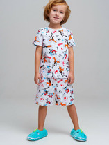 Пижама для мальчиков. Выполнена из хлопкового трикотажа кулирного переплетения. Комплект включает футболку и шорты. Футболка свободная, с круглой горловиной и короткими рукавами. Шорты длиной до колен, с эластичной тесьмой в поясе. Отличный комплект для сна и отдыха!