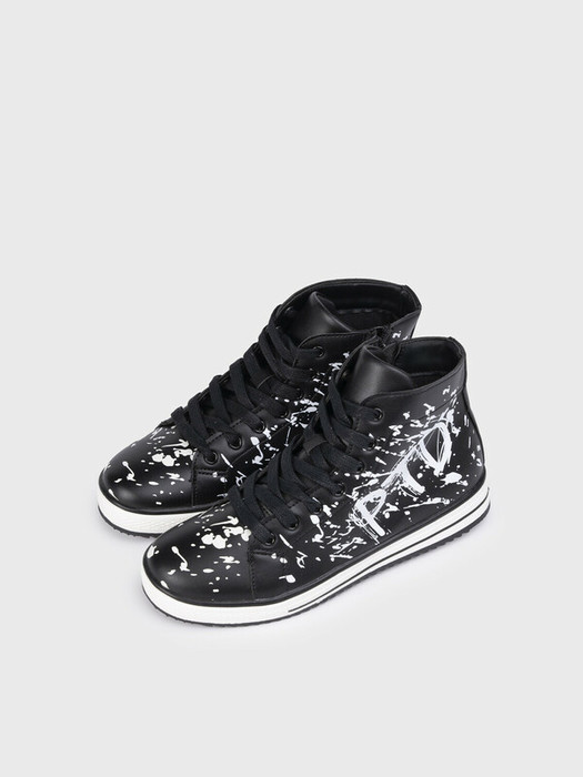 Кеды для девочки подростка. Высокие кеды из искусственной кожи с эффектом забрызгивания краской. Модель имеет шнурки, с помощью которых регулируется подъем, и изнутри молнию для удобства обувания. В носочной части обуви стоит текстильная подкладка c высоким содержанием хлопка 80%, которая обладает высокой гигроскопичностью. В пяточной части обуви текстильная подкладка обладает хорошей износостойкостью. Профилированная стелька из свиной кожи с анатомической формой подсводника обеспечивает правильную нагрузку на стопу. Двухсоставная подошва из ТПР  очень гибкая, не скользит,устойчива к истиранию. Формоустойчивый задник поддерживает стопу в правильном положении. Эргономичная форма колодки обеспечивает правильное формирование стопы ребенка.