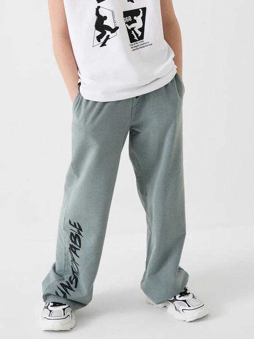 Широкие брюки для мальчика подростка. Модель из хлопкового трикотажа футер без начеса. Пояс на резинке дополнен внешним шнуром для регулировки объёма. Удобные боковые карманы. На штанине декоративный принт.