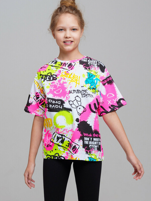 Футболка для девочки подростка. Оверсайз футболка с высоким содержанием хлопка 95%. Благодаря наличию эластана в составе ткани изделие проще в уходе и держит форму. Модель выполнена из качественного и приятного на ощупь трикотажа.