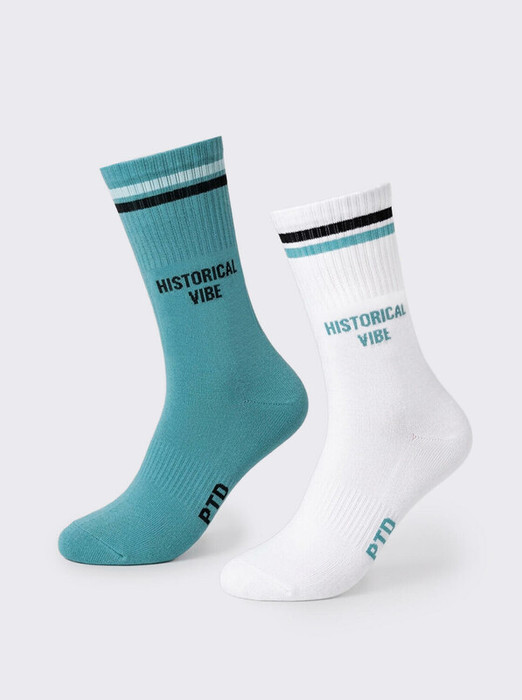 Набор из двух пар стильных гольфов для девочки подростка. В комплект входят носки двух расцветок: одна пара выполнена в нежном бирюзовом цвете с бело-чёрной отделкой, вторая — белая с акцентами в чёрном и бирюзовом. Носки выполнены из мягкого хлопкового трикотажа, хорошо тянутся и комфортно сидят на ноге благодаря эластичной резинке в верхней части. Усиленные мысок и пятка.