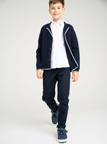 Классический синий школьный кардиган для мальчика подростка. Кардиган прямого силуэта на молнии выполнен из вязаного трикотажа с содержанием хлопка. Кофта в школу выглядит стильно, благодаря лаконичному дизайну. Рубашка, футболка или поло + кардиган для школьника составят красивый элегантный комплект для школы.