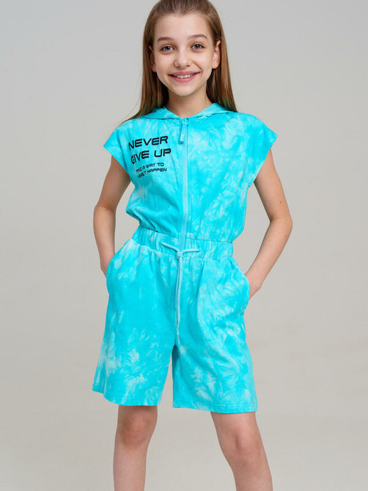Комбинезон для девочки подростка. Комбинезон из качественного и приятного на ощупь трикотажа джерси. Высокое содержание хлопка 95%. Благодаря наличию эластана в составе ткани изделие проще в уходе и держит форму. Пояс на резинке со шнурком. Застежка на молнию. Функциональные боковые карманы. Модель выполнена из качественного и приятного на ощупь трикотажа.
