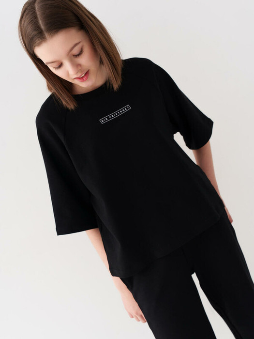 Комплект для девочки подростка. Состоит из оверсайз футболки с коротким рукавом и брюк клеш на резинке. Выполнен из хлопкового трикотажа. Футболка свободного кроя, с круглым вырезом. На передней части расположен аккуратный принт. Брюки длинные, расклешённые книзу, с высокой посадкой и эластичным поясом. По бокам предусмотрены удобные карманы.
