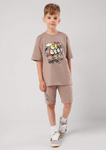 Комплект: футболка, шорты из качественного и приятного на ощупь трикотажа джерси. Высокое содержание хлопка 95%. Благодаря наличию эластана в составе ткани изделие проще в уходе и держит форму. Укороченная футболка oversize. Шорты comfort fit. Эластичный пояс со шнурком. Карманы в боковых швах.