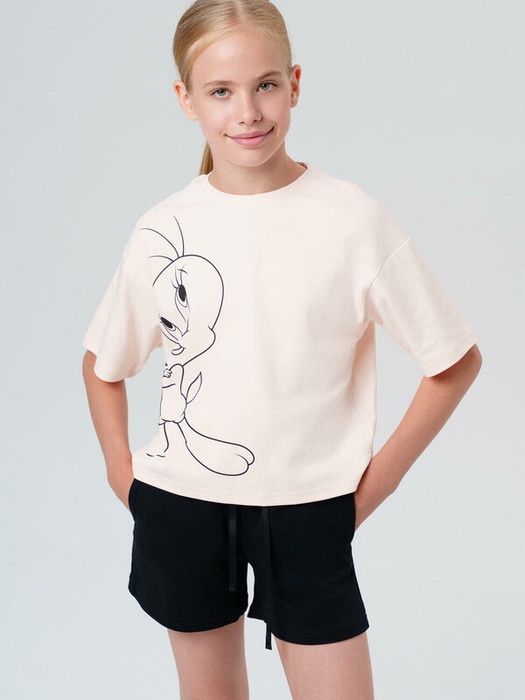 30.03 PlayToday Комплект трикотажный для девочек: фуфайка (футболка), шорты 125