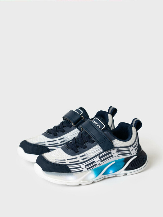 Кроссовки для мальчика с подошвой с LED-подсветкой Кроссовки выполнены из дышащего текстиля и искусственной кожи с повышенной износостойкостью. Эластичные шнурки и липучка создают удобство при обувании. Профилированная съемная стелька из натуральной кожи с анатомической формой подсводника обеспечивает правильную нагрузку на стопу. В носочной части обуви стоит текстильная подкладка c высоким содержанием хлопка 80%, которая обладает высокой гигроскопичностью. В пяточной части обуви текстильная подкладка обладает хорошей износостойкостью. Кроссовки имеют светоотражающие элементы. Формоустойчивый задник поддерживает стопу в правильном положении. Эргономичная форма колодки обеспечивает правильное формирование стопы ребенка. Подошва из ЭВА очень легкая.