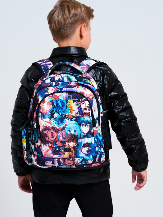 Школьный рюкзак для мальчика подростка. Прямые широкие регулируемые лямки с мягкими вкладками и сетчатым покрытием для улучшения вентиляции, 3 основных отделения на молнии, 2 боковых  кармана: сетчатый и на молнии. Внутри: 1 отсек: карман на молнии, открытые карманы для канцелярии. 2 отсек: без карманов, 3 отсек: карман для папок, карман на молнии, 2 кармана без замка, карабин для крепления пропуска/пенала/ключей, усиленная спинка, дно и верхняя ручка, спинка и обратная часть плечевых ремней - сетчатые, для улучшенной вентиляции, светоотражающие элементы на переднем кармане и плечевых ремнях. Рюкзак в школу можно дополнить мешком для обуви и пеналом в том же дизайне.