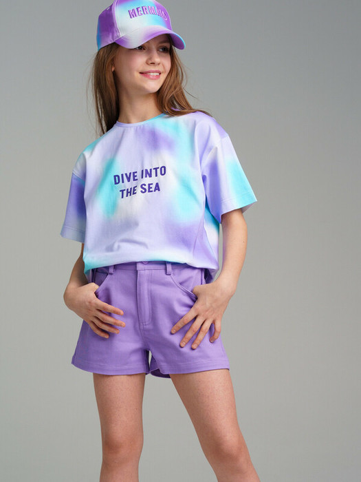 Шорты из твила для девочки. Застежка на джинсовую пуговицу, пояс с внутренней утяжкой. Функциональные карманы.