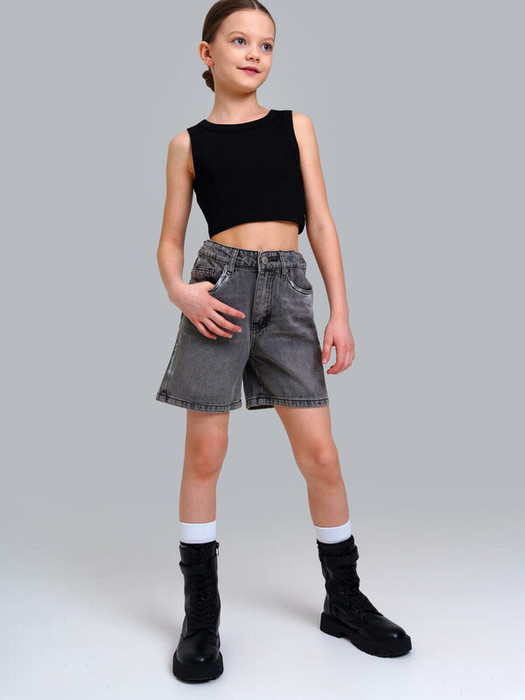 Джинсовые шорты  для девочки подростка. Шорты свободного силуэта. Пояс с внутренней утяжкой. Застежка на молнию и болт. Функциональные карманы.  Модель выполнена из качественного и плотного текстиля.