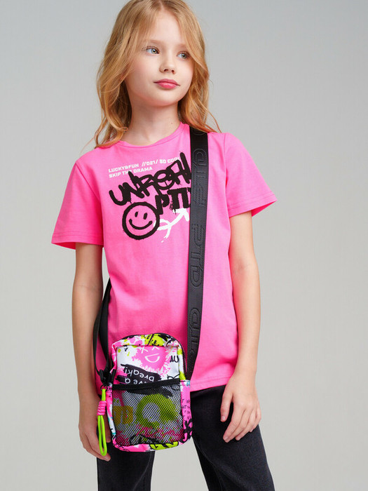 Стильная яркая текстильная сумка кросс-боди для девочки подростка. Принт под коллекцию одежды. Регулируемый брендированный ремень. Основной отсек на молнии, спереди дополнительный карман-сетка, сзади карман для транспортной карты. Параметры: высота - 18 см, ширина -13 см, глубина - 6 см.