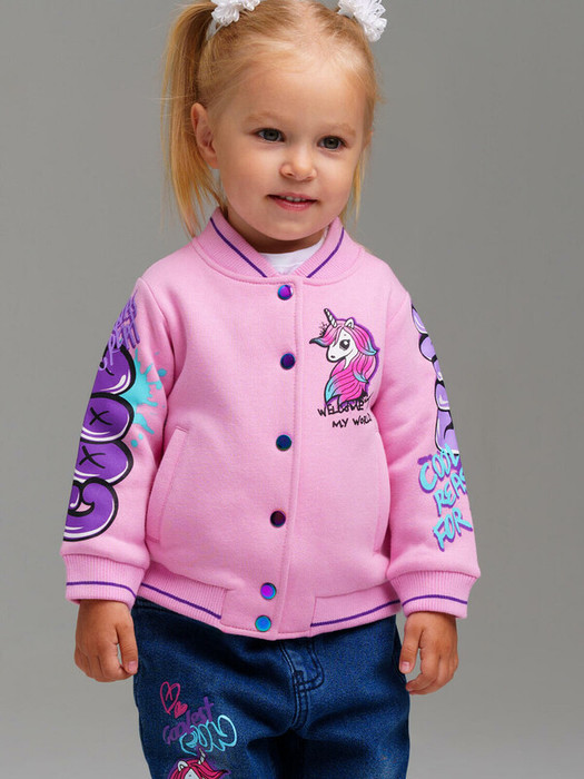 Толстовка детская из футера с начесом для девочки. Модный бомбер с высоким содержанием хлопка. Модель из капсульной коллекции PRETTY-UNICORN. Соберите полный образ в едином стиле! Модель выполнена из качественного и приятного на ощупь трикотажа.