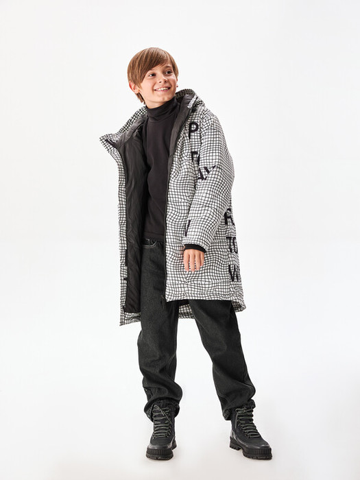 Куртка прямого силуэта в черно-белой трендовой расцветке с водонепроницаемым покрытием и мембраной. Утеплитель синтепон пластовой 200 гр/м2.  Манжет из ткани "Soft Stretch"прочная внешняя поверхность и мягкий внутренний слой с велюровым ворсом. Температурный режим до минус 15 градусов. Изделие дополнено съемным объемным капюшоном и боковыми карманами, которые защитят от ветра и дождя в любую погоду. Застежка - на молнию закрыта ветрозащитной планкой на кнопках. Воротник - стойка, переходящая в капюшон. Доступна в 2 цветах.
