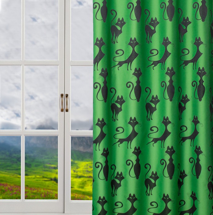 Совместные покупки Нижний Тагил Товары для дома и дачи Шторы — 4919, метраж, КОТЫ НА ЗЕЛЕНОМ ФОНЕ, цвет зеленый, ширина 1,9 м