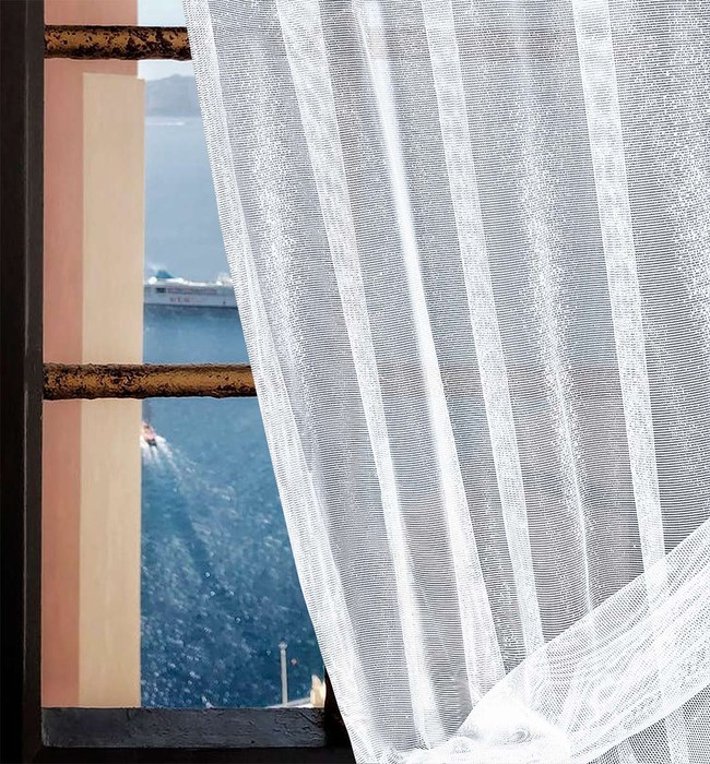 Ткань мелкосетчатой фактуры с вплетенной капроновой нитью, которая придает мягкий блеск и нарядный вид. . Произведено на фабрике "WISAN", одной из самых крупных и известных фабрик Польши, 100 % полиэстер. Светонепроницаемость - 10%. Жаккард.