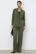 Платье приталенного силуэта из вискозной плательной ткани. Изделие отрезное по линии талии с защипами. В боковых швах карманы. Втачной короткий рукав. Притачная планка с застёжкой на пуговицы. Вырез горловины обработан отложным воротником на стойке. В комплекте пояс из основной ткани.