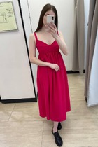 Платье свободного силуэта из вискозной ткани. Изделие по линии талии на резинке, на юбке-сборка. V-образный вырез горловины обработан отложным воротником на стойке. Втачной длинный рукав с манжетой, застегивающейся на пуговицы.