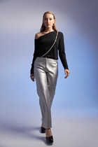 Юбка прилегающего силуэта из костюмной ткани. На передней части юбки выполнена фигурная кокетка. Сзади по среднему шву застёжка-молния, снизу разрез. Пояс притачной.