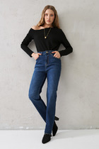 Джемпер прилегающего силуэта из эластичного полотна в рубчик. V-образный вырез горловины и линия проймы оформлены бейками.